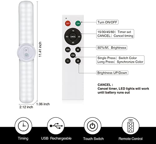 Distant Management & sensible sensor & Timing: It’s straightforward to make use of distant to manage cupboard lights, equivalent to activate/off, alter brightness (3 totally different brightness), change LED lights shade, set timer to show off lights routinely by 15/30/45/60 minutes, which is wise for vitality saving. One distant controller can management a number of LED closets lights on the identical time.