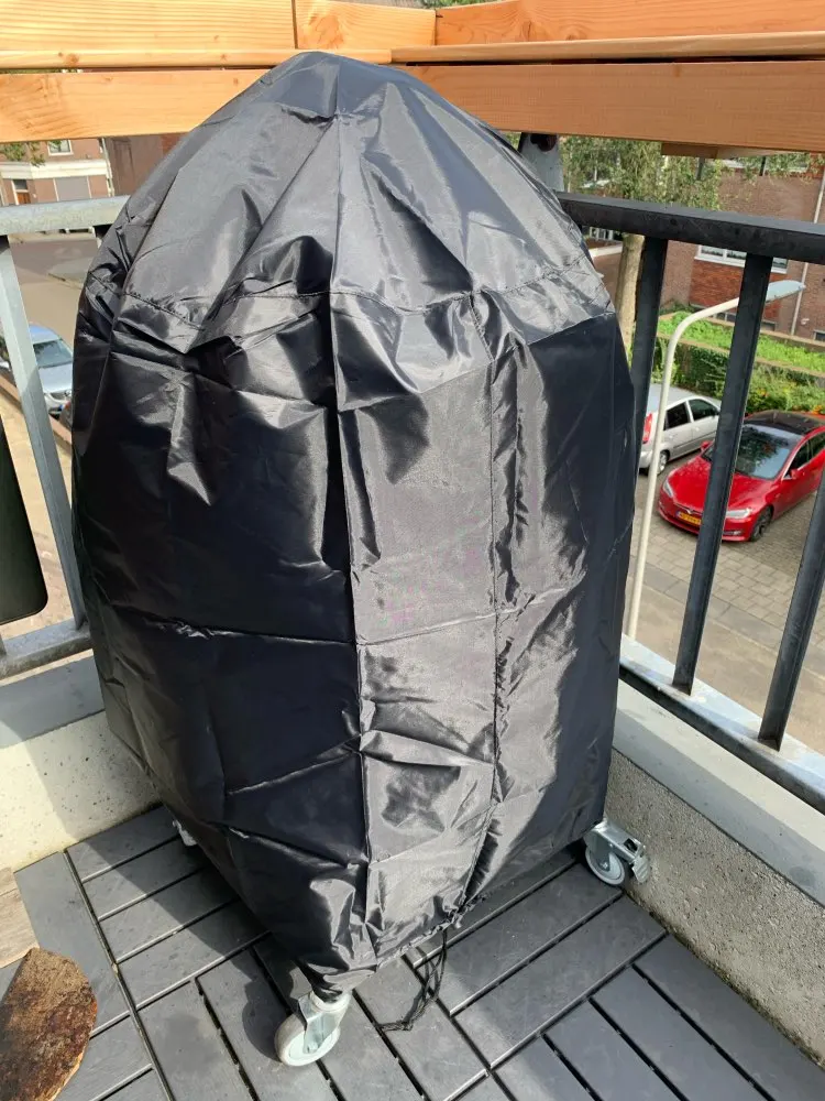 mooie hoes voor 57cm weber BBQ. aan de onderkant zit ook nog een koort waarmee je de hoes kunt aantrekken zodat deze niet van je BBQ afwaaid. Snelle levering!
