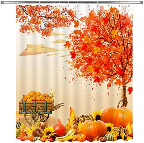 BEIFIVCL Fall Bathe Curtain for Lavatory, Fall Bathe Curtain with Pumpkins, Maple Leaves Farmhouse Autumn Bathe Curtain, Fall Bathe Curtain with 12 Hooks for Lavatory Decor, 72×72 Inch