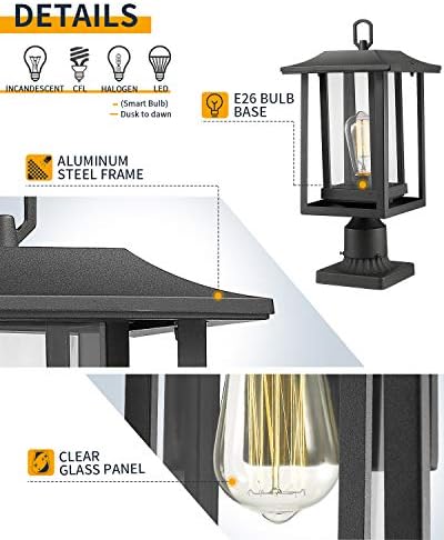 ✅ VARIOUS BULBS COMPATIBLE: This outside pillar mild makes use of one E26 medium base Edison bulb(60W Max, not included). Absolutely suitable with LED, Incandescent, CFL, Halogen, Nightfall to daybreak bulbs, LED sensible bulbs. Dimmable when used with dimmable bulbs and dimmer.
