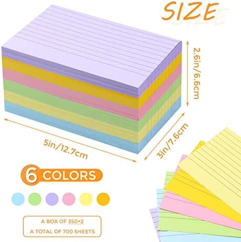 Lengthy Time period to Use: 700 multi coloured observe playing cards with 2 storage bins can meet the appliance necessities of a number of situations, these dominated coloured index playing cards are nice for college studying, taking notes, making recipe playing cards and workplace provides.