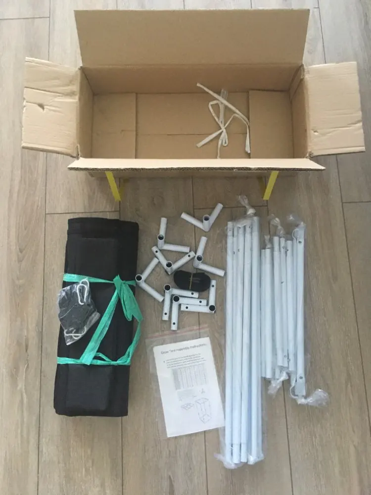 Really good quality, fast delivery, got some gifts and the seller was really kind. Nice tent to keep 2 plants in pots between 3L/4L.