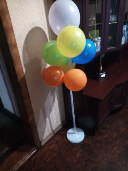 подставки для шариков меня порадовали, смотри тся очень эффектно. инструкции по сборке не было, но и так всë понятно. можно разобрать и использовать ещё много раз. не особо устойчивы, в проходных местах лучше не ставить, будут перемещаться