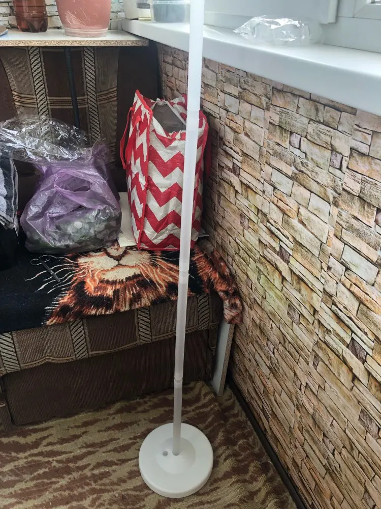 Delivery is moderate, almost a month! The holder is reliable, high, in the bottom you can pour water or fill the sand for stability! Everyone is happy, as in the picture and in the description!
