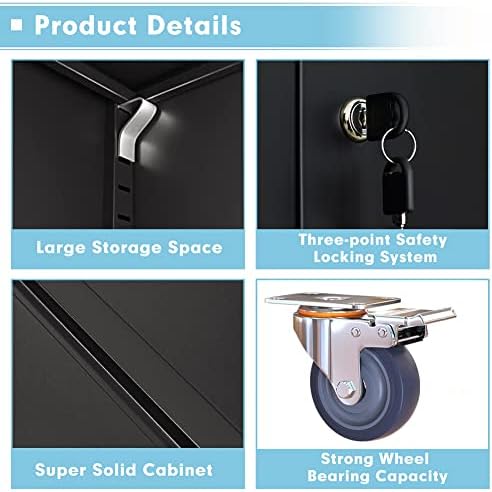 ⭐️[Lockable design]: The metallic storage cupboard has two doorways, one lock and two keys. Our metal cupboards is an upgraded model of the three-point lock system, utilizing thicker metal bars to supply larger safety to your valuables and essential objects.