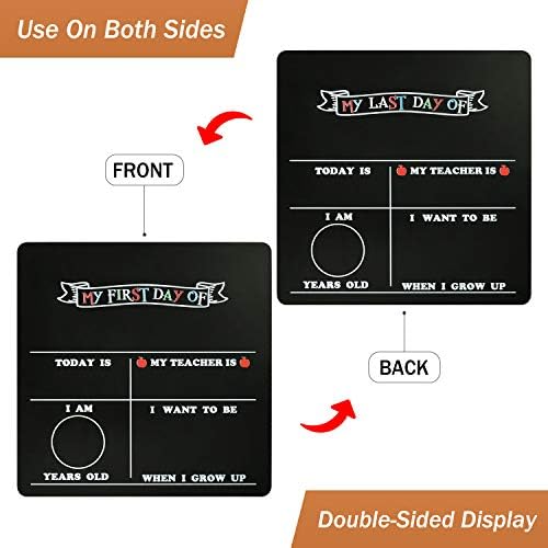 Double Sided Design: Sturdy but light-weight show board, customized First Day and Final Day Picture Props, You’ll be able to preserve the “LAST DAY OF SCHOOL” prop for the summer season of subsequent 12 months, 2 sided design permits chalk board to create the utmost worth, you need not pay twice