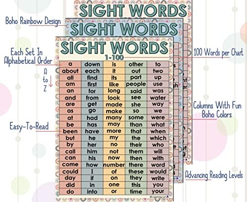 Be the first to review “Boho Sight Phrases Charts 1-300 Alphabetized – Laminated 14×19.5” – Instructional Posters, Classroom Ornament, Again to Faculty Provides, Studying Posters for Preschool, Kindergarten, 1st 2nd third Grades”