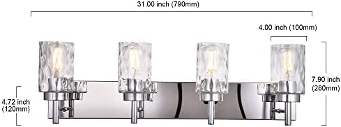 BONLICHT Trendy Chrome Toilet Gentle Fixtures Over Mirror with Clear Hammered Glass Shade,4 Gentle Farmhouse Bathtub Vainness Lighting Industrial Sconces Wall Mount Lamp for Kitchen Above Mirror Over Sink