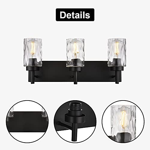 BONLICHT Self-importance Gentle Fixtures 3 Gentle Fashionable Wall Sconces Lighting Black Rest room Lights Wall Mounted with Hammered Glass Shade,Farmhouse Wall Gentle for Mirror Cupboards, Powder Room, Dressing Desk