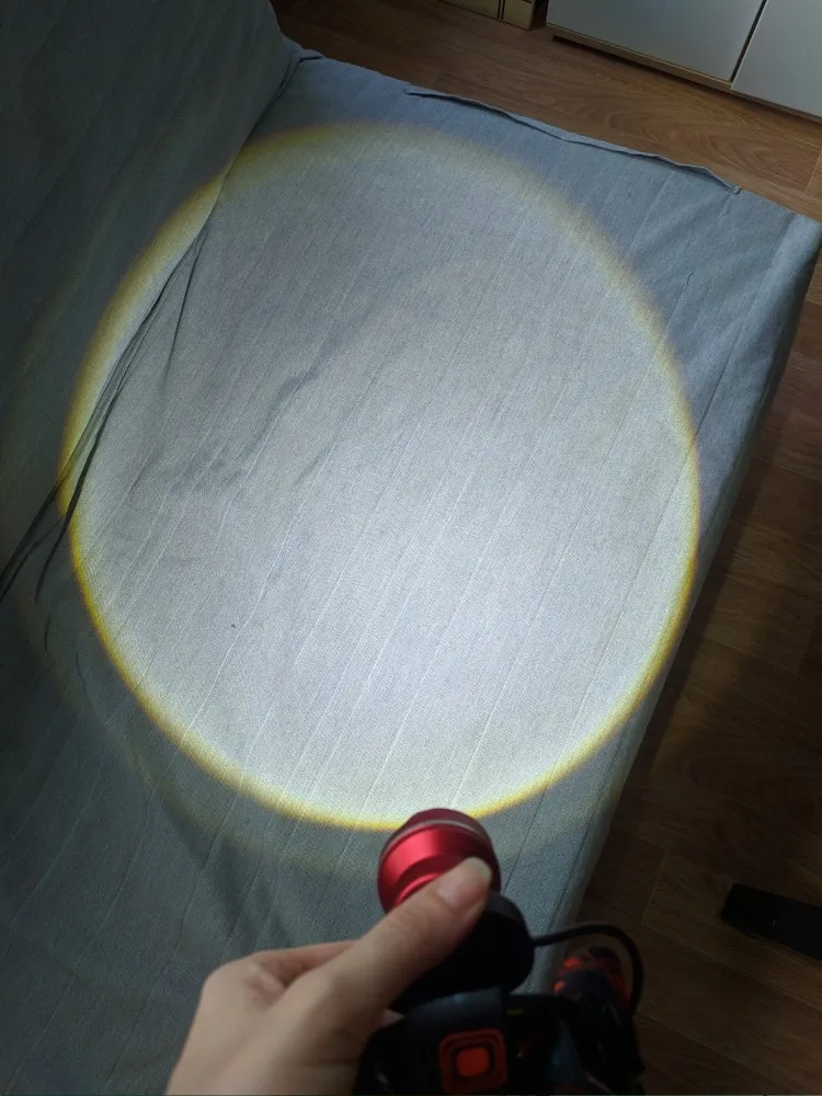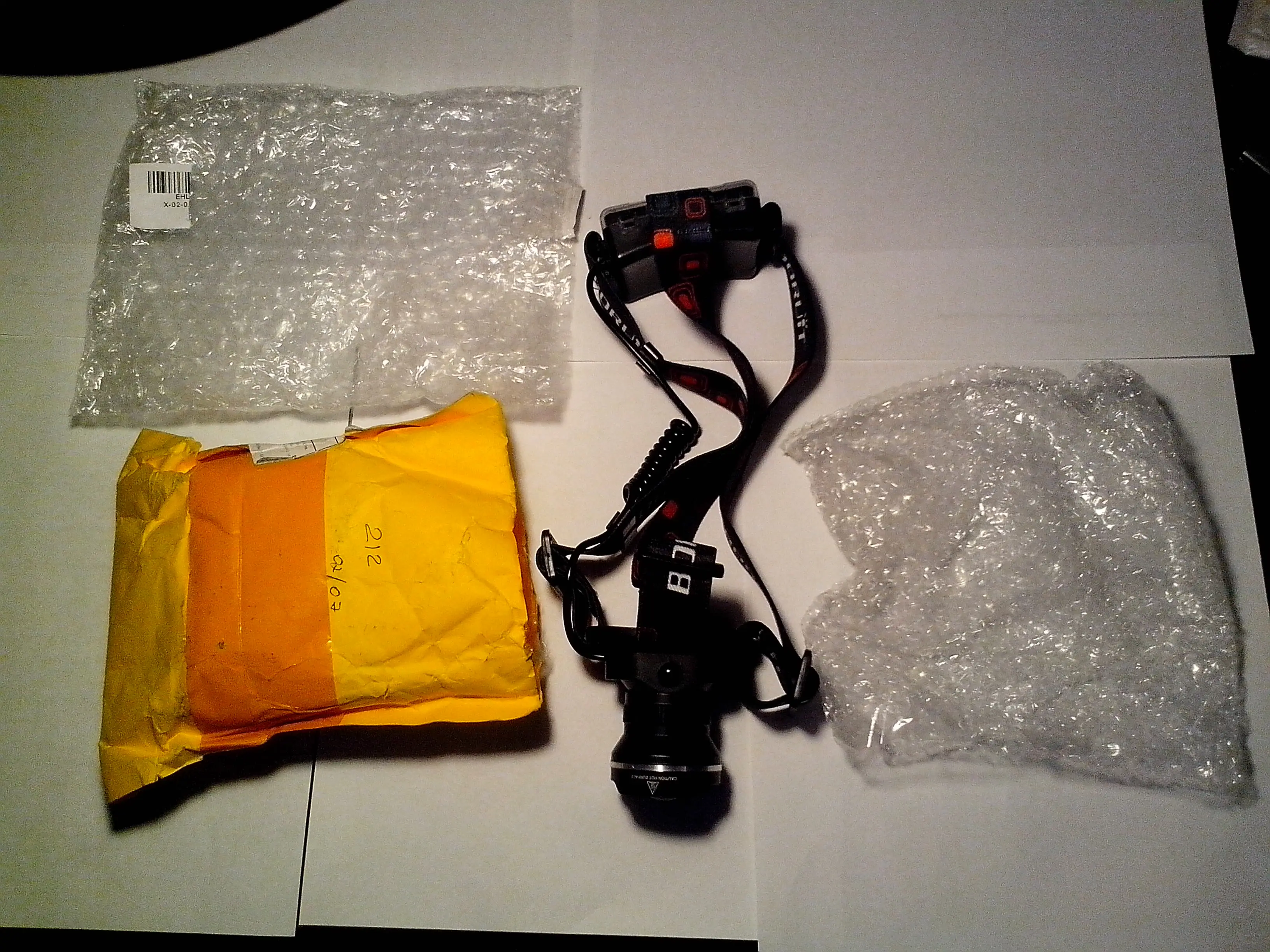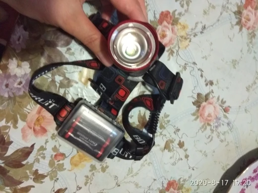 Delivery 26 days to Volgograd. Perfectly packed. The upper rubber band is short, but it can be easily sewn even with hands. Quality on 5 +, looks expensive. Glows like a floodlight, three modes. Weighs with batteries of 185g. Bomb lantern, be sure to take!
