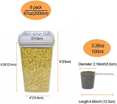 BPFY 6 Pack 2 Litre Hermetic Meals Storage Containers, Plastic Cereal Containers with Simple Lock Lids, BPA Free Kitchen and Pantry Group Canisters for Dry Meals Storage, Further 3 Measuring Spoons, 8 Chalk Labels, 1 Pen(White)