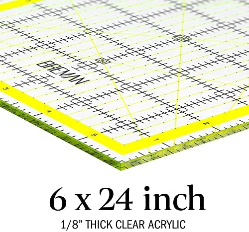 Breman Precision Clear Quilting Ruler – 6×24 Inch Clear Acrylic Ruler for Stitching & Quilting – Acrylic Ruler for Chopping Cloth – Clear Ruler Grids for Precision Measurements – Cloth Ruler for Stitching