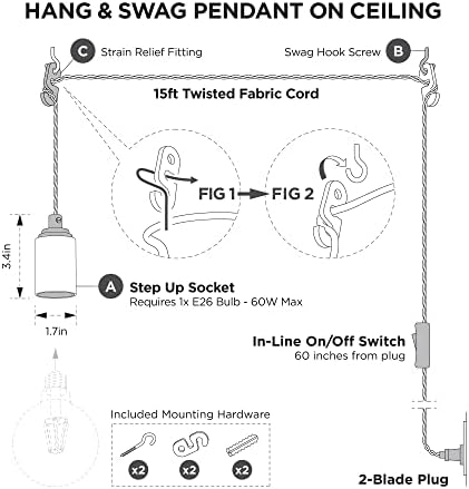 VERSATILE: The lengthy twisted woven material twine will allow you to hold and swag the pendant mild to precisely the place you want it. Merely insert plug into outlet and function utilizing the in-line on/off swap. No electrician wanted.