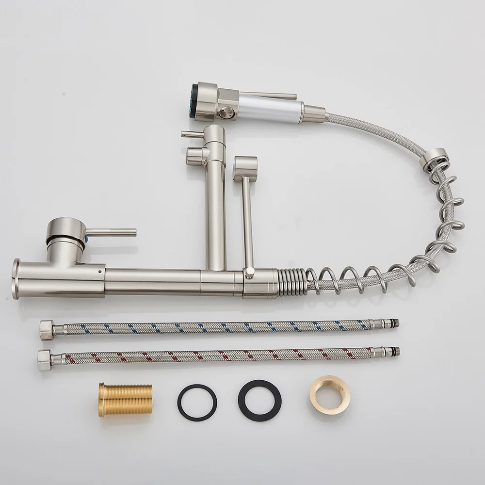 Specification: Brushed Nickel Kitchen Faucet Twin Perform Spout Pull Down Bathe Spray Swivel Spout Kitchen sink Faucets Chilly Scorching Mixer faucet crane