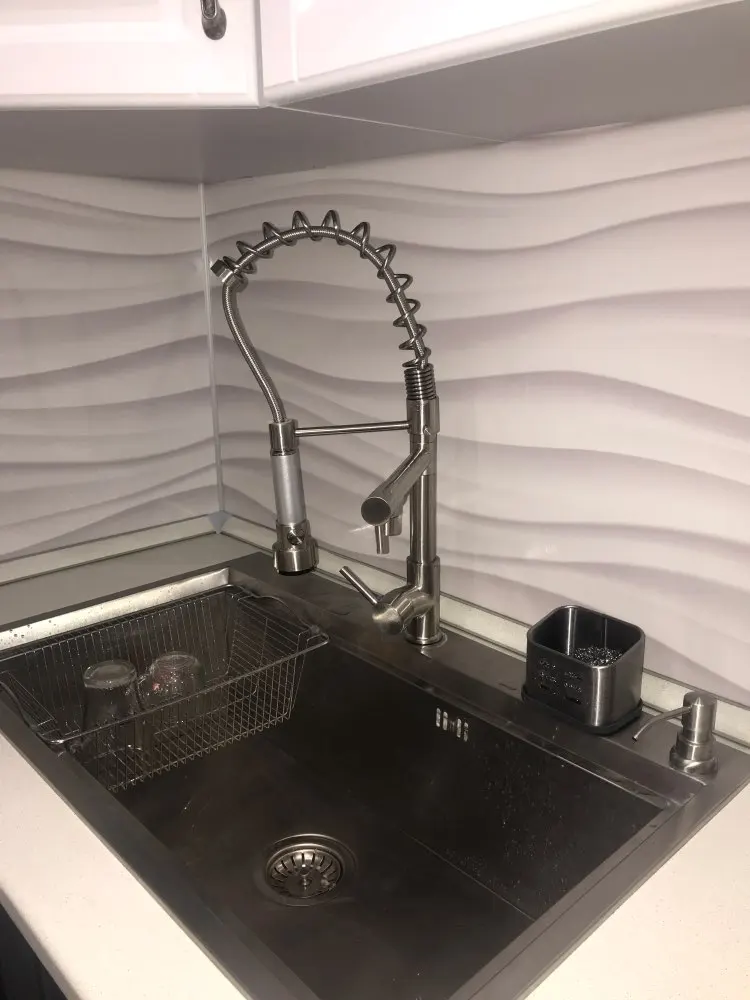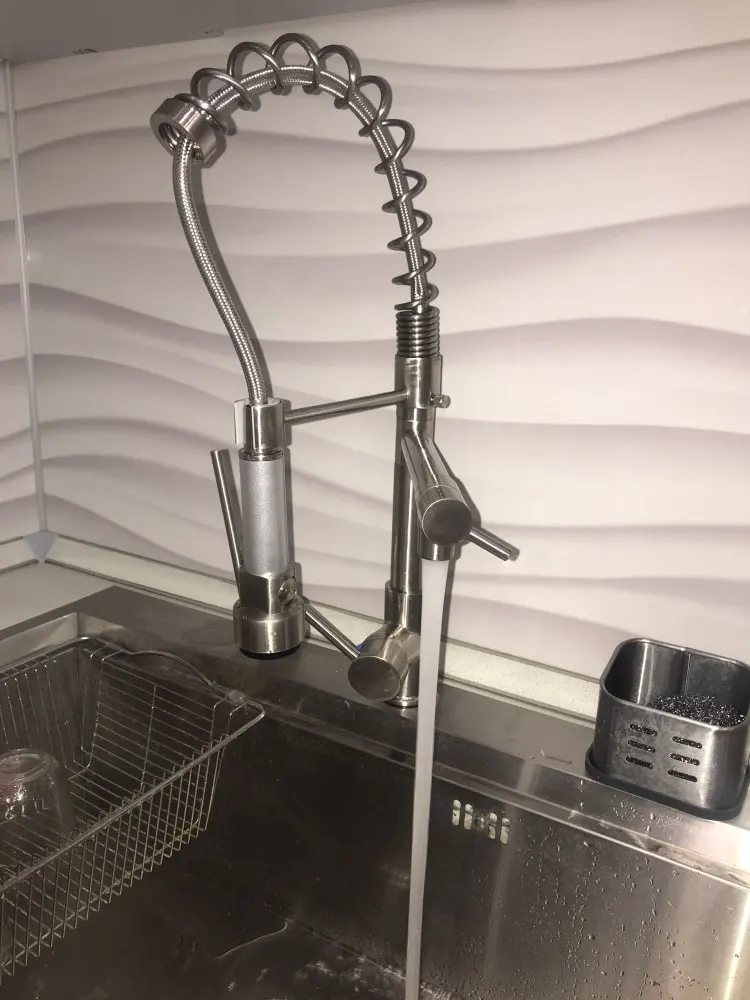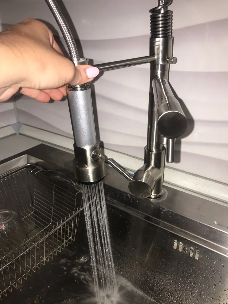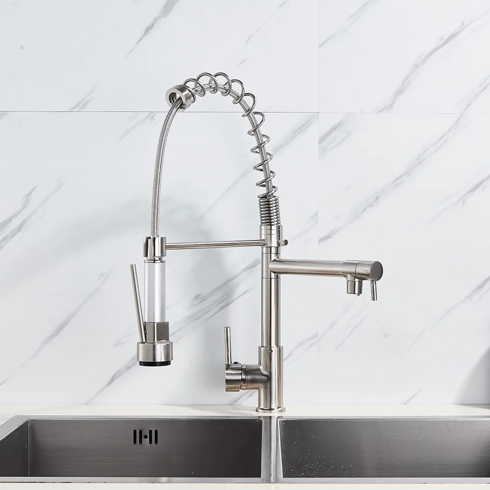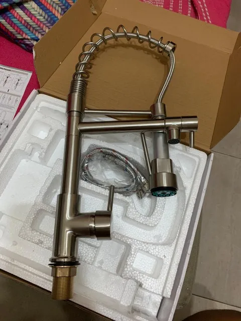 20 reviews for Brushed Nickel Kitchen Faucet Twin Perform Spout Pull Down Bathe Spray Swivel Spout Kitchen sink Faucets Chilly Scorching Mixer faucet crane