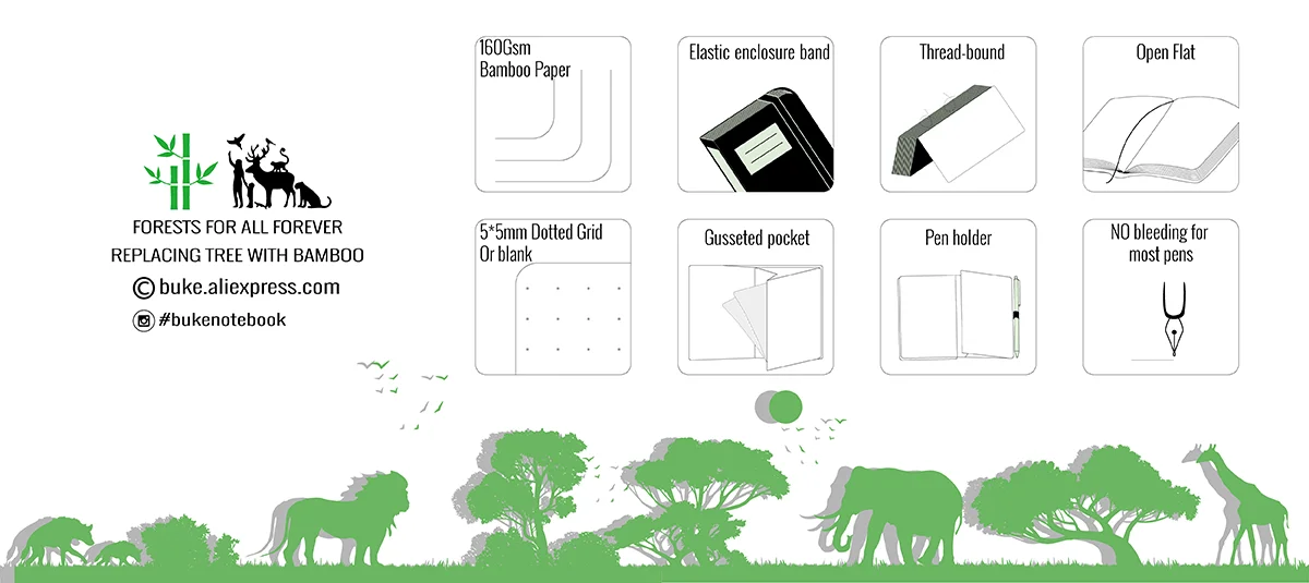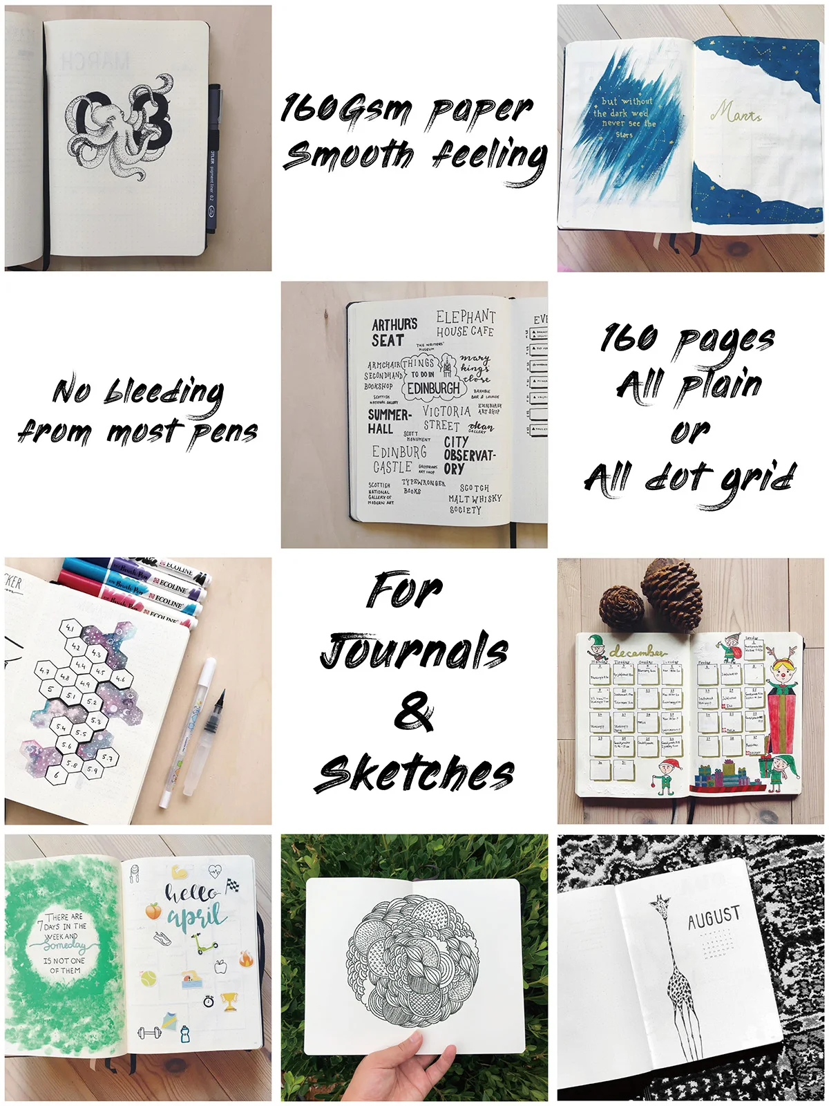Specification: BUKE 5X5mm Journal Dot Gird Pocket book 160 Pages, Measurement 5.7X8.2 Inch, 160Gsm Extremely Thick Bamboo Paper DIY Bujo Planner