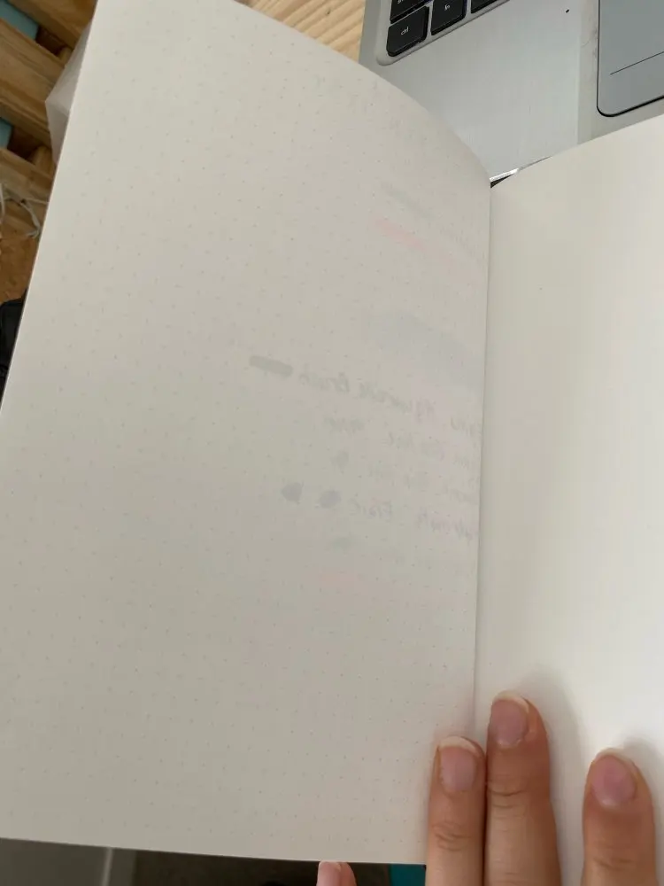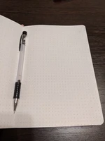 Great notepad. Pages are tight. The dots are exactly printed everywhere. There is a bookmark, an elastic band for the pen, and an elastic band for the girth of a completely notepad. On the last page of the pocket. There is a small smell, but not critical; I think it will quickly fade. In Rostov-on-Don came a little less than a month. Recommend.