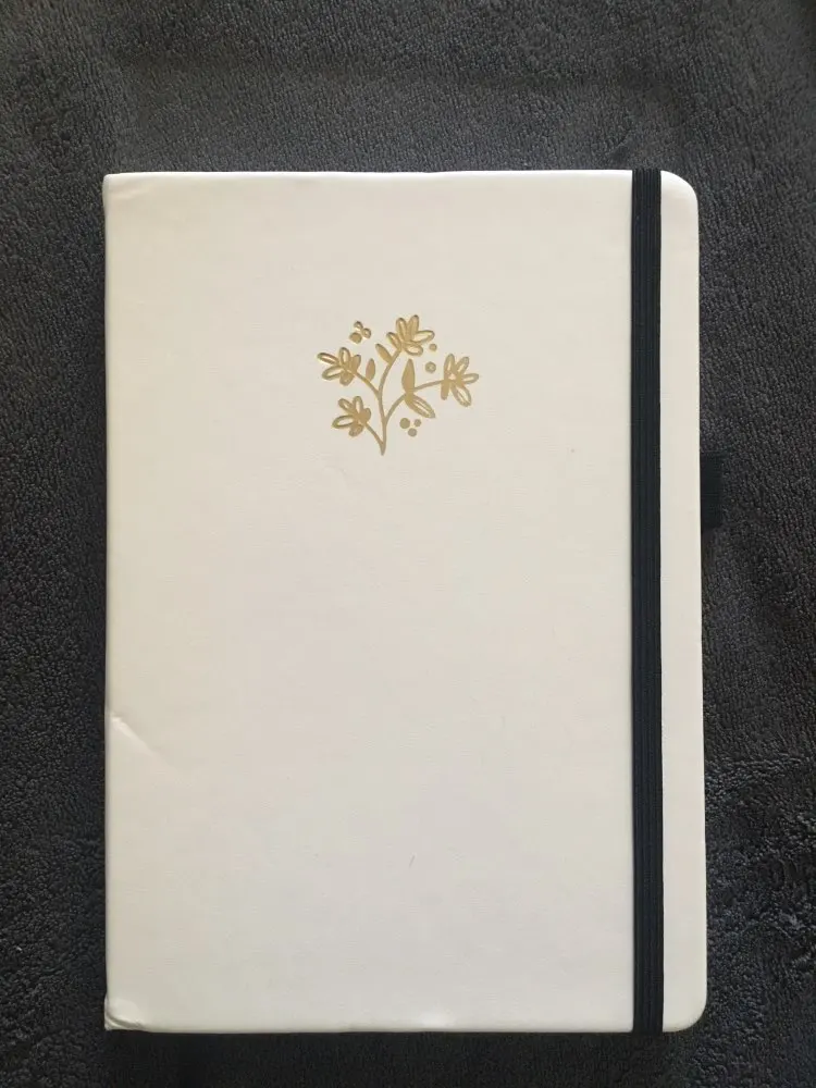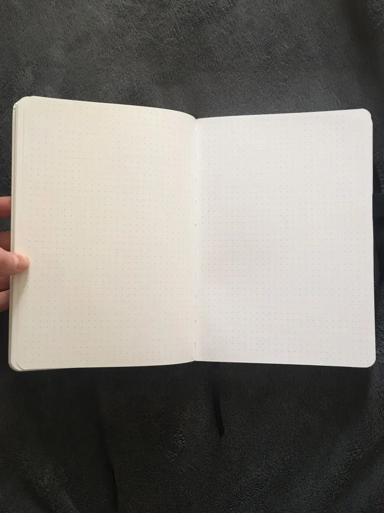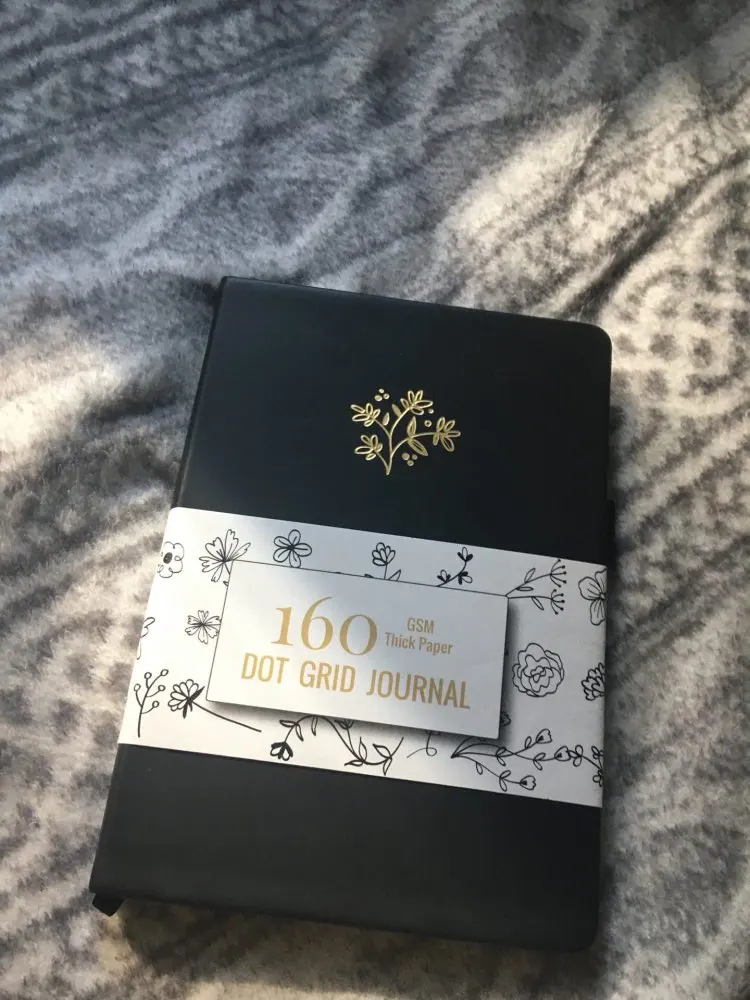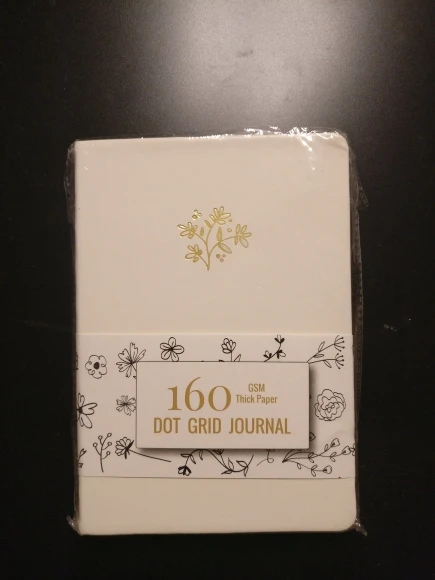 The journal took a month to get here but I could follow the tracking which was nice. It’s just like in the pictures and feels really good quality! The pages are nice and thick so hopefully there’ll be no bleed. I also love the dots, I was afraid they’d be too dark but they’re just perfect! It also has a pocket in the back, a pen holder and the rubber band. It got a bit bent at the corner on the way here but it’s not too serious.