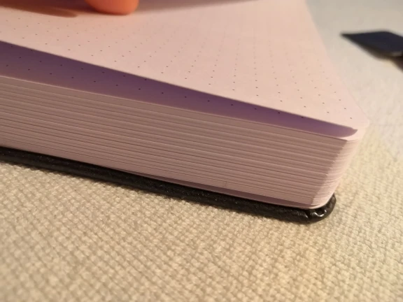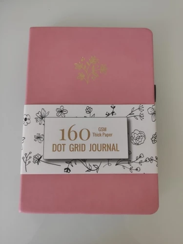 Shipping was relatively fast, a bit less than a month. Really nice and safe packaging. These gifts(see pics) came with it. The dots are pretty light, sometimes hard to see and are pretty small. The pages are numbered, which was a pleasant surprise. It has a spacious pocket on the back. Pages are definitely thicker than normal printer paper. Most supplies don’t ghost to the other page too much. Honestly good notebook, if i finish this one i may buy again :).