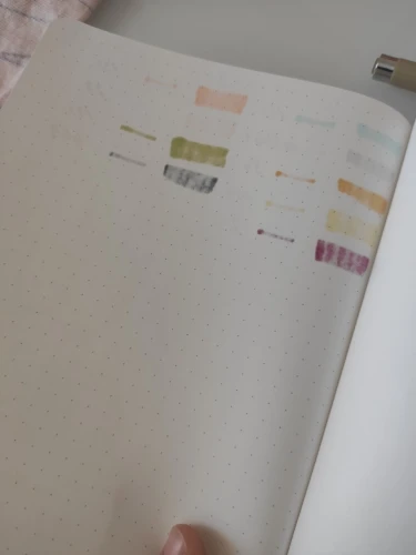 Hojas de buena calidad que no se traspasa nada utilizando acuarela y varias capas. Un muy buen cuaderno para hacer bullet journal o art journal por el gramaje de las hojas