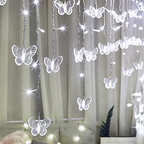 Butterfly Curtain Lights 120 LED 19.7FT USB Powered 8 Modes Distant Window Curtain Lights with 24 Butterflies Waterproof Twinkle Lights for Bed room Christmas Vacation Social gathering Ornament – Cool White
