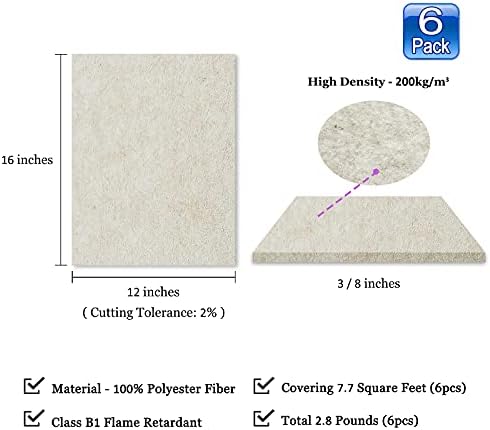 BXI Sound Absorber – 16 X 12 X 3/8 Inches 6 Pack Excessive Density Acoustic Absorption Panel, Sound Absorbing Panels Scale back Echo Reverb, Tackable Acoustic Panels for Wall and Ceiling Acoustic Therapy
