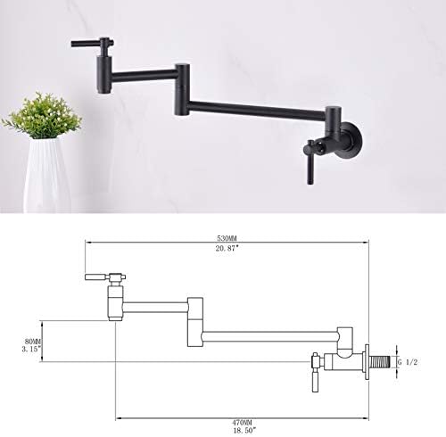 BZOOSIU Pot Filler Faucet Wall Mount, Double Joint Swing Arms Stable Brass Folding Faucet, Single Gap Two Handles Wall Mount Kitchen Faucet, Matte Black