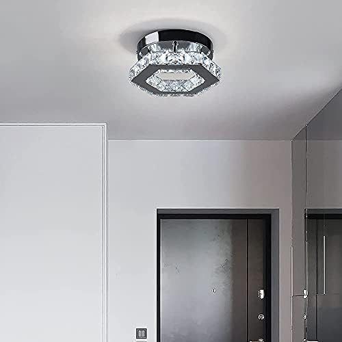 Cainjiazh Trendy Mini Crystal Chandelier LED Crystal Pendant Lamp Semi Flush Mount Crystal Lighting Ceiling Fixture for Hallway Staircase Balcony Bedrooms Dinning Rooms