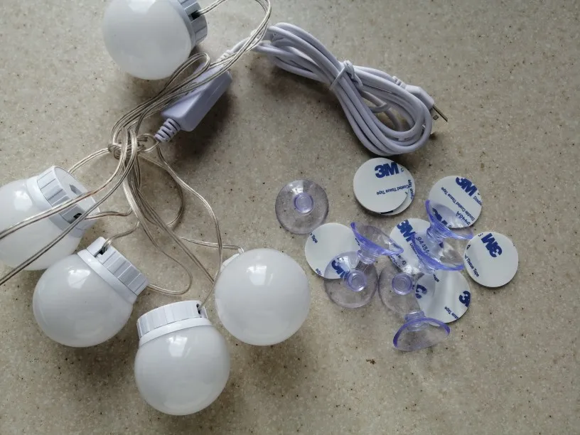 * Double-sided tapes and suction cups are offered, the bulbs could be immediately and shortly sticked on mirrors with tapes or suction cups.