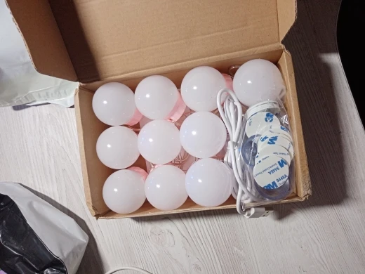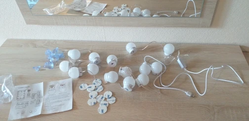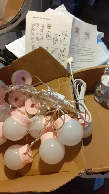 Super fast shipping. My wife is happy. Also included are 15 suction cups for 14 bulbs for mounting on the mirror, for example in the bathroom.