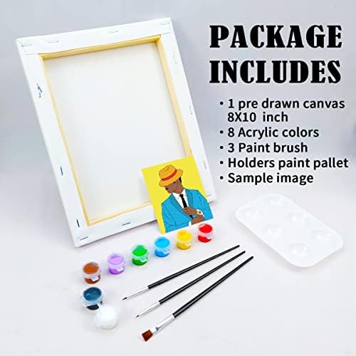 Canvas Portray Equipment Pre Drawn Canvas for Portray for Adults Celebration Celebration Kits Paint and Sip Celebration Provides 8×10 Canvas to Paint Afro King 8 Acrylic Colours,3 Brush,1 Pallet Boy Paint Artwork Set