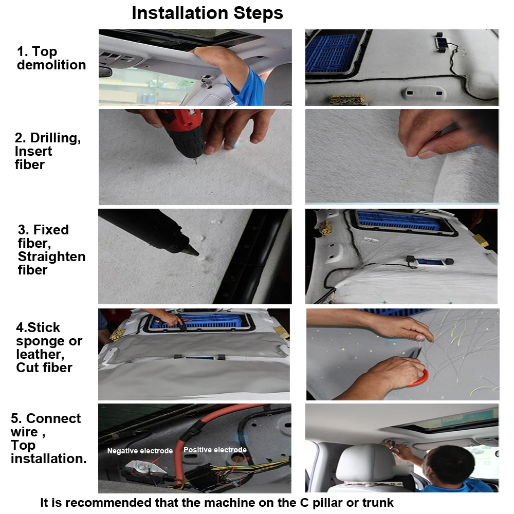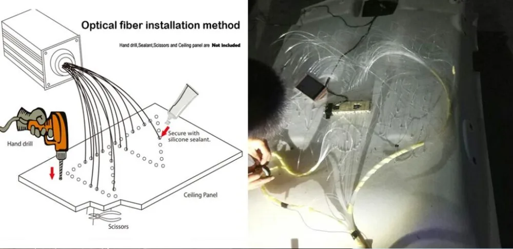 Specification: Automobile Roof Star Lights DC12V 6W RGB LED Plastic Fiber Optic Mild RF Distant Management 2M 0.75mm 100~200pcs Optical fiber Lighting