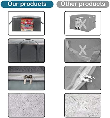 CCidea 2 Pack Garments Storage Bag Organizer with Bolstered Deal with, Nice for Comforters, Blankets, Bedding, Beneath Mattress Storage 90L(Massive ,Grey)