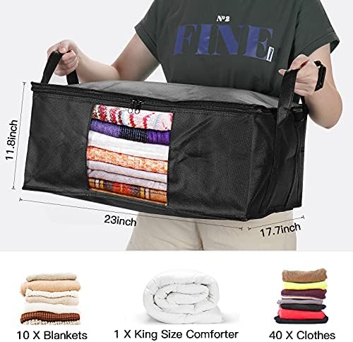 CCidea Giant Capability Garments Storage Bag Organizer with Bolstered Deal with , Nice for Comforters, Blankets, Bedding, Underneath Mattress Storage (Black-3Pack, Giant)