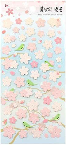 Cherry Blossoms in Full Bloom/Sakura Sticker Sheets (4 Pack) Diary Ornament Sticker Scrapbooking Craft Sticker
