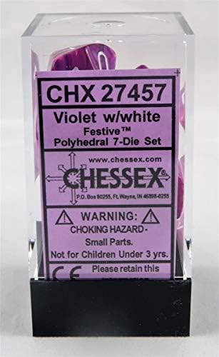 Chx27457 Violet festive set of seven cube by Chessex cube set contains 7 cube – 1ea of D4, D6, D8, D10, D12, D20, D10 percentile