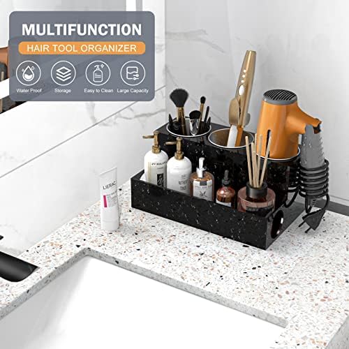 Cilinta Hair Device Organizer, Acrylic Holder for Blow Dryer/ Styling Instruments/ Flat Irons/ Curling Irons/ Self-importance Storage, Black Fashionable Countertop Stand for Equipment, Dwelling, Kitchen, Rest room