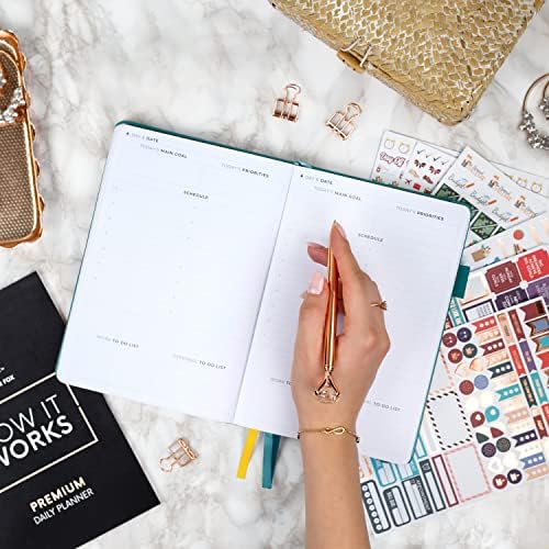 Intelligent Fox Planner Every day Premium Version – Undated Luxurious Every day Planner with Hourly Schedule, Private Organizer, Productiveness & Objective Journal, Begin Anytime, A5-sized, Lasts 6 Months – Viridian Inexperienced