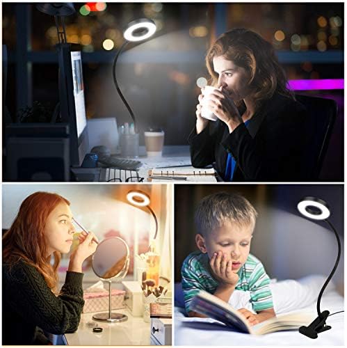 Clip On Mild Studying Mild Lamp,48 LED Dimmable Gooseneck Clamp Desk Mild Lamp,3 Mild Coloration Clip On Ring Mild for Books in Mattress Headboard Pc Laptop computer Webcam Zoom(Black)