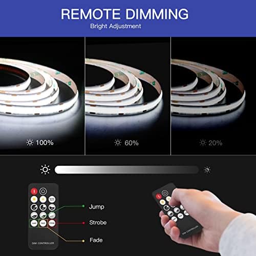 COB LED Strip Lights 6500K, 16.4ft Dimmable 480 LEDs/m Extremely Vibrant White LED Strip Gentle, 5500LM Tape Lights Package, CRI 90+, DC12V LED Lights for Bed room, TV Backlight, Kitchen, DIY Lighting