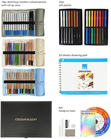 COLOUR BLOCK 91PC Sketching Provide Package, Sketch Guide, Comfortable Pastel, Charcoal Portray, Coloured Pencils for Grownup Coloring, Artist Skilled Artwork Provides, PU Leather-based Drawing Set for Youngsters, Newcomers
