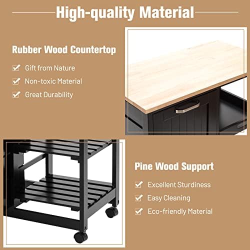 😊【Sturdy Materials:】The countertop of kitchen trolley cart is manufactured from premium rubber wooden. As a present from nature, the rubber wooden is non-toxic and comparatively sturdy. As well as, the assist legs are manufactured from high-quality pine wooden with nice sturdiness. Undoubtedly, each supplies prolong service life.