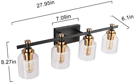 Create for Life® 4-Gentle Toilet Self-importance Gentle,Industrial Wall Sconce Toilet Lighting,Matte Black End, Vintage Brushed Gold Copper Accent Socket,Clear Glass Shade
