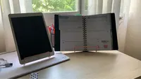 Tal cual la foto, la verdad que pensé que sería más inestable pero aguanta cualquier tipo de libro que es realmente para lo que yo lo quería