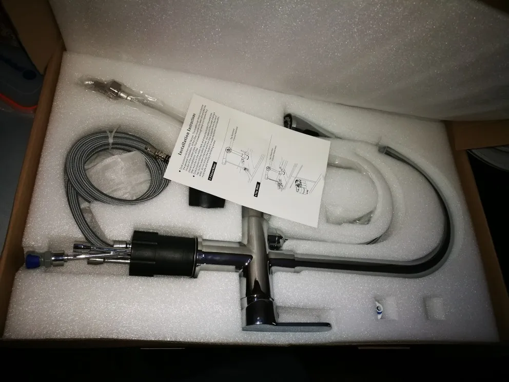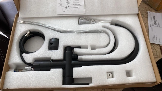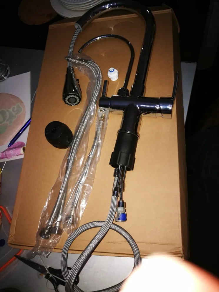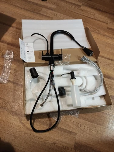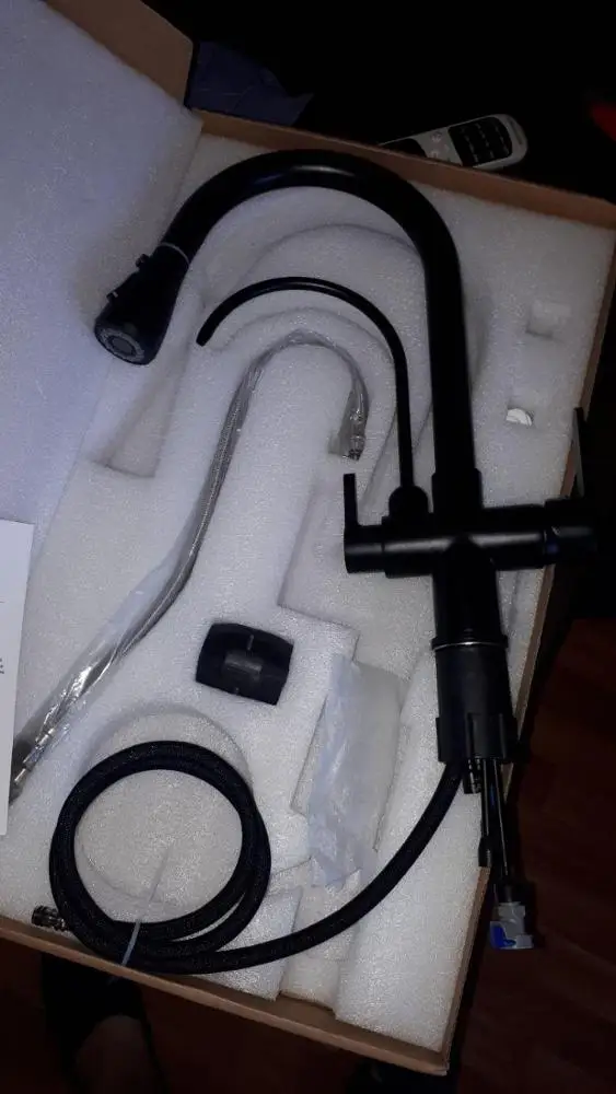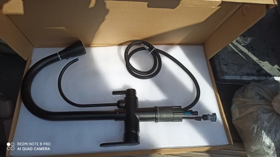 The crane is cool, black, beautiful, large, heavy. Real 🙂 but there are 2 nuances, the dispute did not open. 1! One eyeliner did not have a thread, I had to buy another. 2. slightly dig the Filter Faucet, but very little. In principle, it does not bother, I just know about it x) in general I recommend, in the store I did not see such, but such expensive.