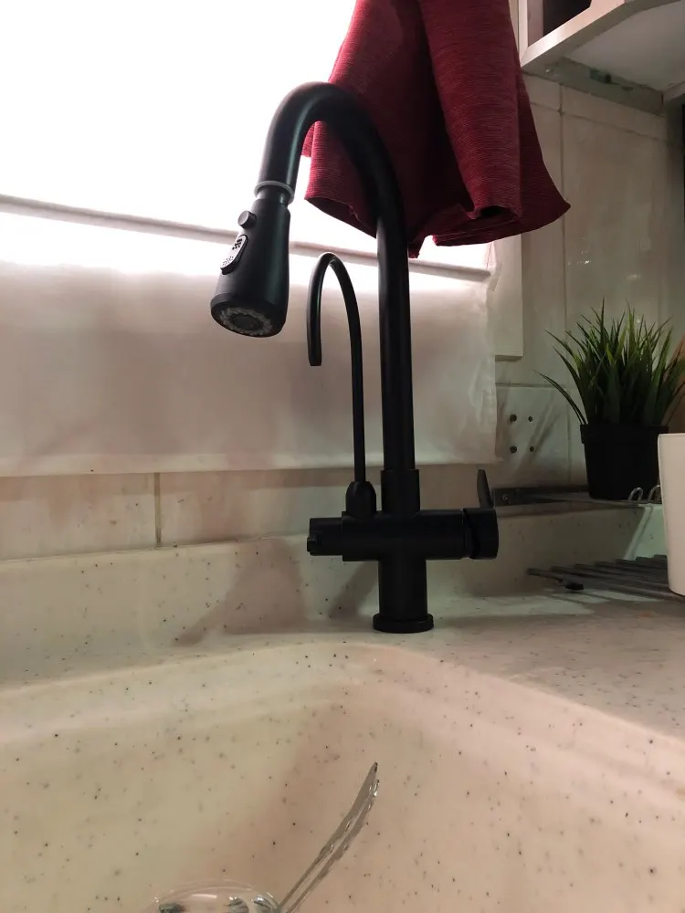 Encantado con el grifo, del frigorífico americano sacamos un tubo para el grifo chico, y tengo agua filtrada. Llegó en unos días. Perfecto