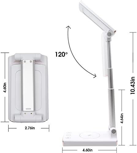 Desk Lamp with Wi-fi Charger,Transportable Desk Lamp with USB Charging Port, Small Desk Mild 3 Lighting Modes 4 Ranges Brightness Contact Management Research Lamp for Residence/Workplace (With out Energy Financial institution Base)