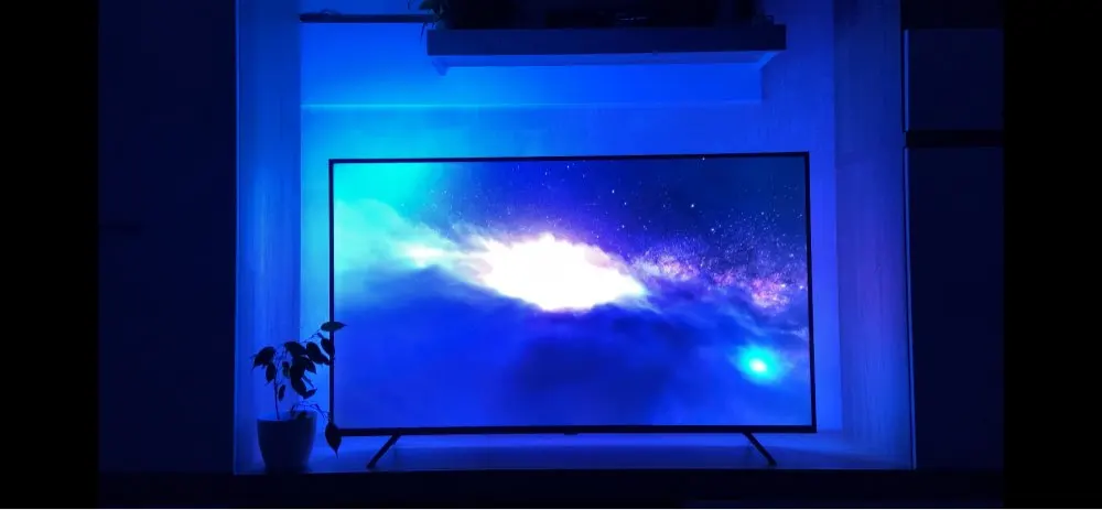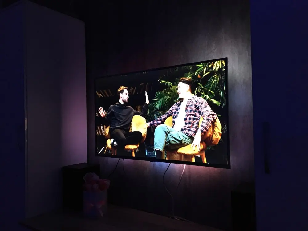 Put on 60 “bodies. 5 meters was enough with a margin. Do not forget to order the corners for the tape separately. It will be faster and easier to collect without a soldering iron. Installed the program ambient light application on TV console mecool M8s pro. The program is in English, but there is a manual for Russian. I went with the adjustment. HD videobox, smart YouTube TV, lazy media Deluxe, Fry! TV everything works fine, the rest through the browser-if you need it very much.