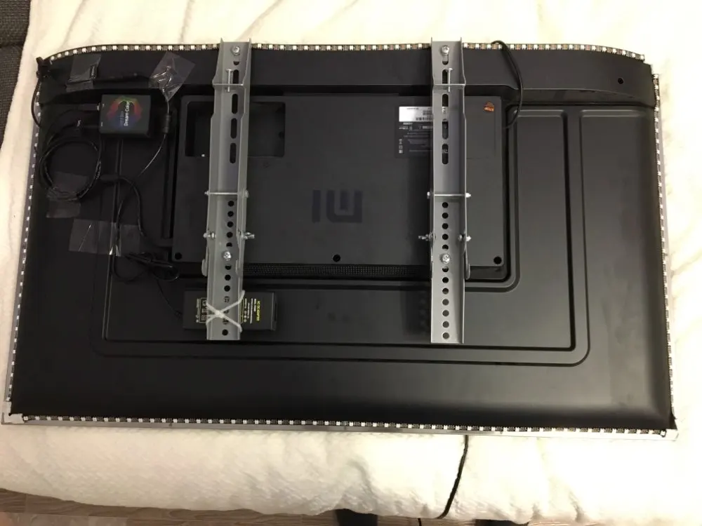 Everything works. For 47 inches took 3 meters with a density of 60 LEDs per meter. Made 4 zones: top and bottom by meter (60 pieces of LEDs each), on the sides of 50 cm (30 pieces of LEDs), only enough. For large diagonal (more than 47 inches) TVs need to take more than 3 meters or make only 3 zones (on top and sides)