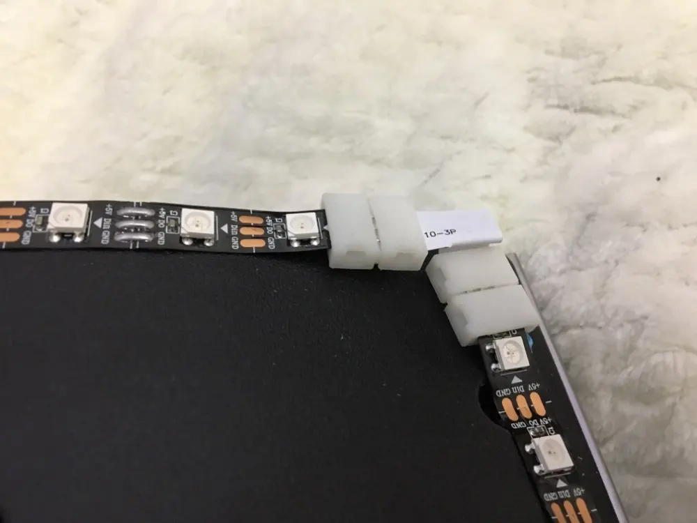 It was exactly 2 weeks. Installed in 30 minutes. With Xiaomi TV for 65 inches, everything works well. Took 5 meters! Horizontally it turned out 83 diodes vertically 45 diodes. The power supply is attached on 2-sided Scotch to the TV.